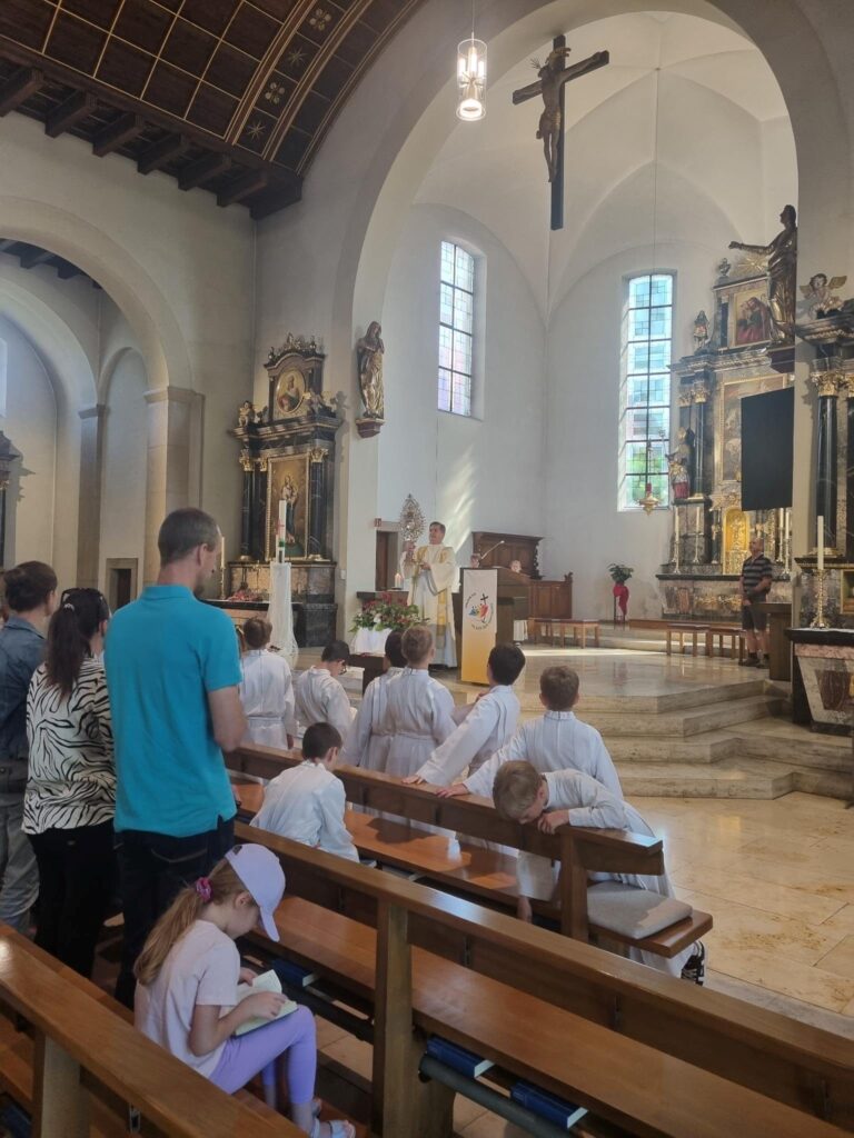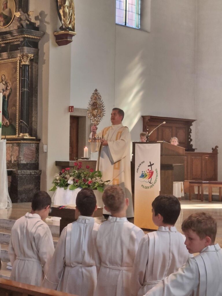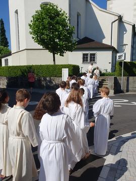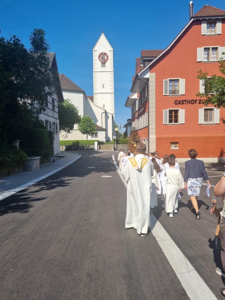 Bei strahlendem Wetter durften wir in Oberrohrdorf beim Schulhaus Fronleichnam feiern. Die Prozession zur Kirche Sankt Martin und der feierliche Segen mit der Monstranz führten diesen besonderen Festgottesdienst zu einem schönen Abschluss.