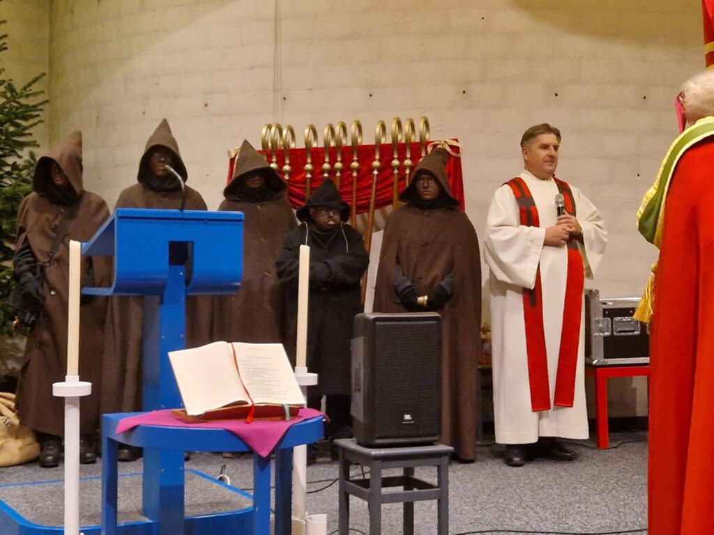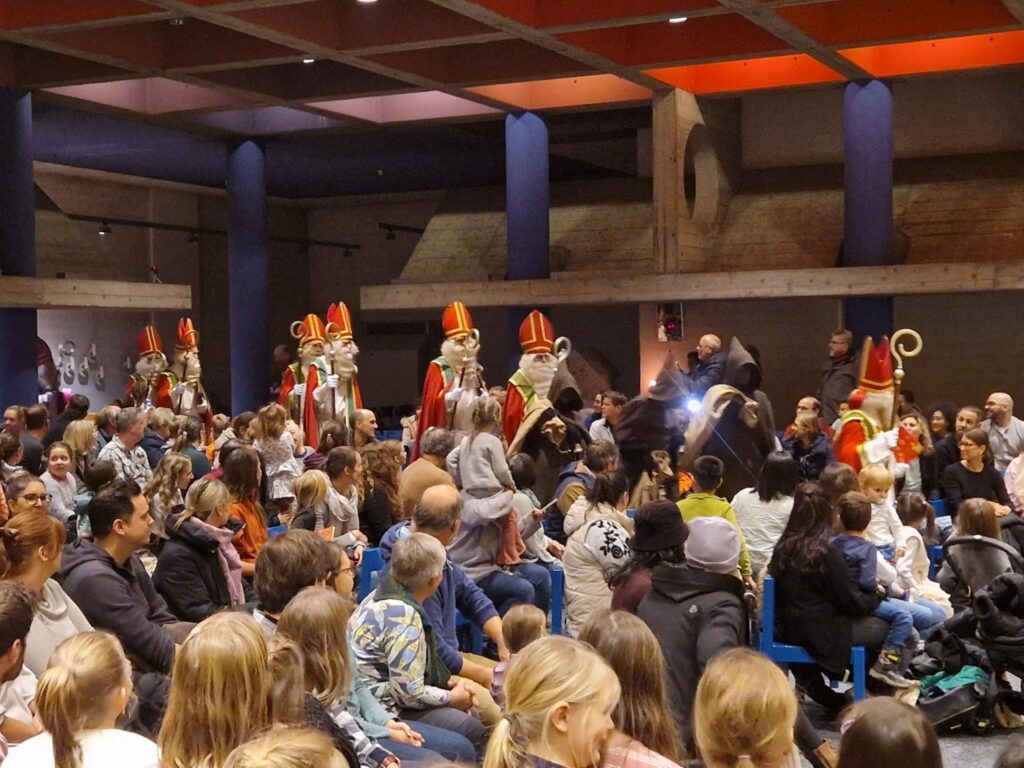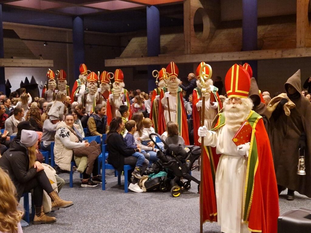 Ein besonderes Highlight: Beim Auszug begleiteten ganze 10 Samichläuse – wie auf dem Foto festgehalten – die Kinder und Familien hinaus in den Abend und sorgten für staunende Augen und viele glückliche Gesichter.